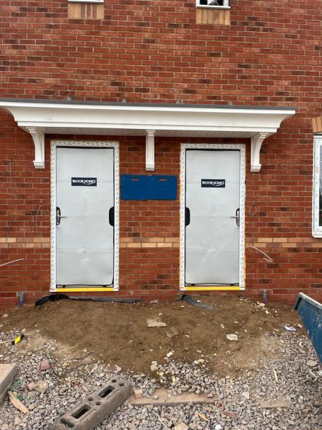 Our external door covers safeguard front doors from scratches, dents, and dirt during construction and installation. Made with robust, waterproof materials, they ensure doors remain pristine, providing peace of mind to builders and manufacturers alike. Shield Door Protect has supplied in excess of 125,000 protective covers to the leading House builders in the UK.